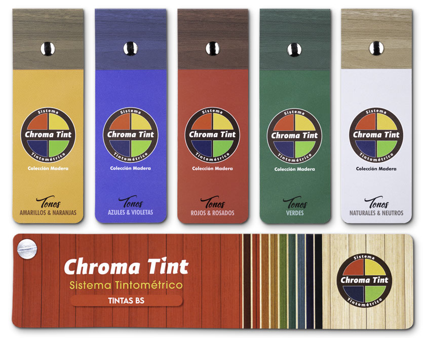 El kit de abanicos Chroma Tint Madera esta organizado en 5 familias cromáticas y presenta 500 colores cuidadosamente seleccionados a partir de la carta Chroma Tint 2050 colores.